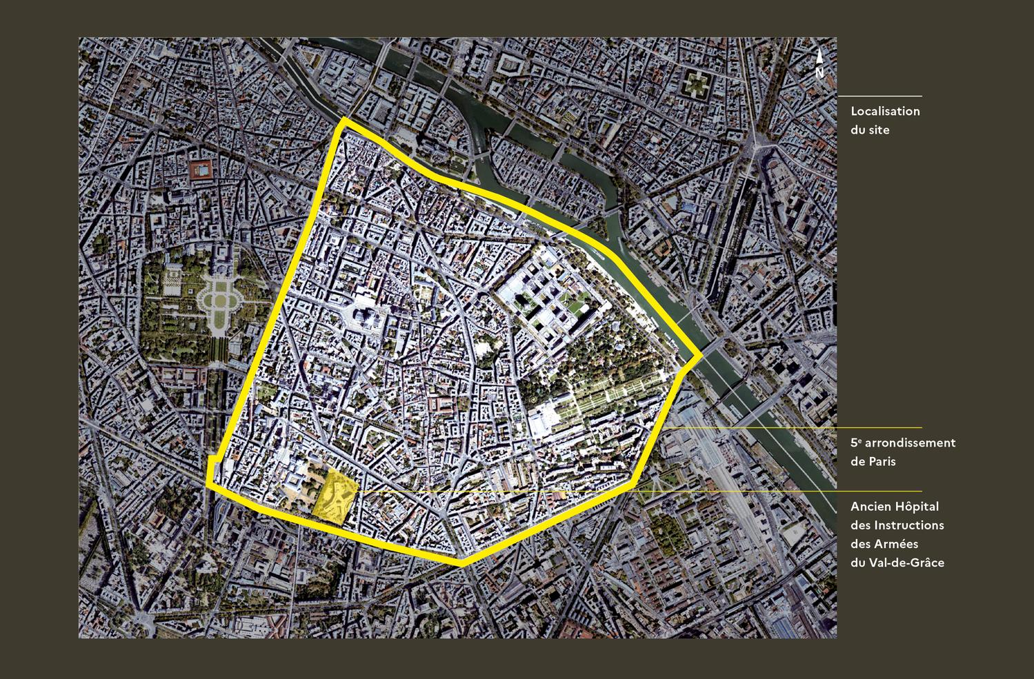 L’ancien Hôpital d’Instruction des Armées du Val-de-Grâce, implanté sur une parcelle de 28 000 m² de surface, est situé au 74-78 Boulevard de Port-Royal dans le Vème arrondissement de Paris.