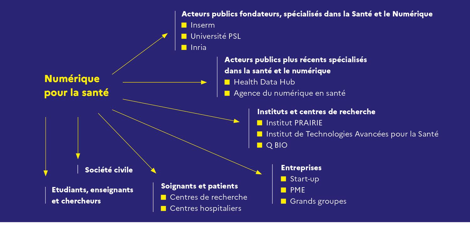 - impliquer l’ensemble des acteurs du secteur (recherche publique, enseignement supérieur, acteurs privés, acteurs de l’innovation, professionnels de santé et industriels offreurs de solutions logicielles, associations de patients, etc.) dans la conception des solutions numériques, notamment via des partenariats entre les secteurs publics et privés ;