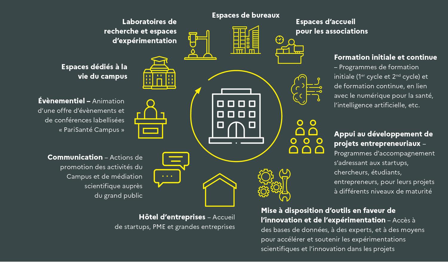- Services aux occupants du Campus (restauration, logement, etc.).